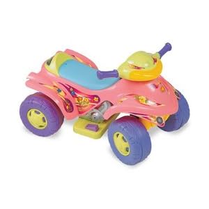 Hit the trails, or simply the neighborhood, on this power-packed four x 4 ATV! It options fun engine sounds, similar to a real ATV, and it moves in 4 routes; Left, Right, Forward and Reverse. Play time/battery charge finals for 1 to 2 hours. Speed vary from zero.93 to 1.24 mph. Measures 26.77"L x 18.11"W x 15.75"H. Maximum weight capability of forty four lbs. Requires 1 "6V" battery (included) and 3 "AA" batteries (not included).